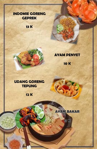 INDOMIE GORENG GEPREK 13 K AYAM PENYET 10 K UDANG GORENG TEPUNG 12 K