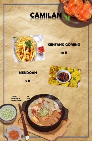 CAMILAN KENTANG GORENG 10 K MENDOAN 5 K CIRENG 7K SOSIS SPICY 10 K SOSIS BAKAR 10 K
