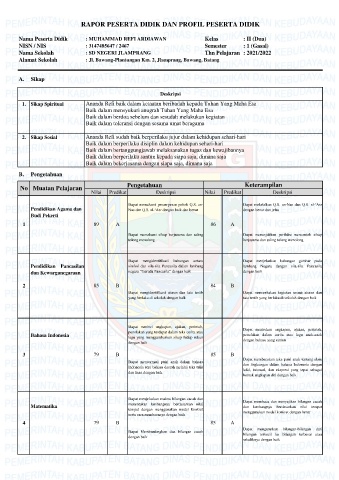 RAPOR PESERTA DIDIK DAN PROFIL PESERTA DIDIK