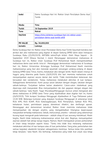 https://tirto.id/demo-surabaya-hari-ini-rektor-unair- persilakan-demo-asal-tertib-eiK8