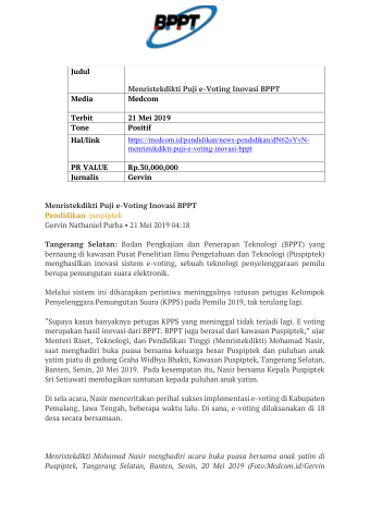 https://medcom.id/pendidikan/news-pendidikan/dN62oYvN- menristekdikti-puji-e-voting-inovasi-bppt