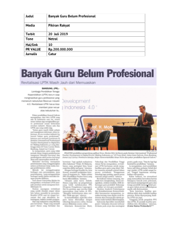 Judul Banyak Guru Belum Profesional Media Pikiran Rakyat Terbit 20 Juli 2019 Tone Netral Hal/link 10 PR VALUE Rp.200.000.000 Jurnalis Catur