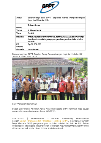 hhttp://surabaya.tribunnews.com/2019/03/08/banyuwangi- dan-bppt-sepakat-garap-pengembangan-kopi-dari-hulu- ke-hilir
