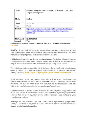 https://metro.sindonews.com/read/1424860/170/puluhan-kilogram- ganja-beredar-di-kampus-dikti-akan-tingkatkan-pengawasan- 1564394937