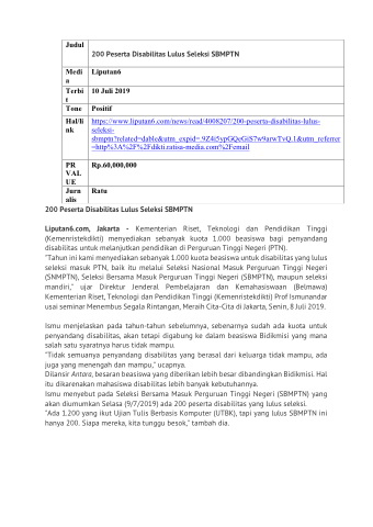https://www.liputan6.com/news/read/4008207/200-peserta-disabilitas-lulus- seleksi- sbmptn?related=dable&utm_expid=.9Z4i5ypGQeGiS7w9arwTvQ.1&utm_referrer =http%3A%2F%2Fdikti.ratisa-media.com%2Femail