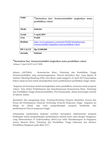 https://www.antaranews.com/berita/822823/hackathon-day- kemenristekdikti-tingkatkan-mutu-pendidikan-vokasi