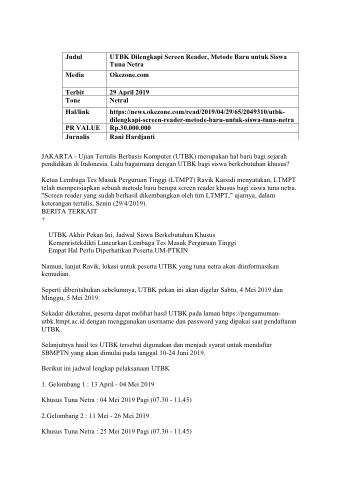 https://news.okezone.com/read/2019/04/29/65/2049310/utbk- dilengkapi-screen-reader-metode-baru-untuk-siswa-tuna-netra