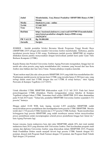 https://nasional.sindonews.com/read/1419700/15/membeludak- unej-batasi-pendaftar-sbmptbr-hanya-8500-orang- 1562922874