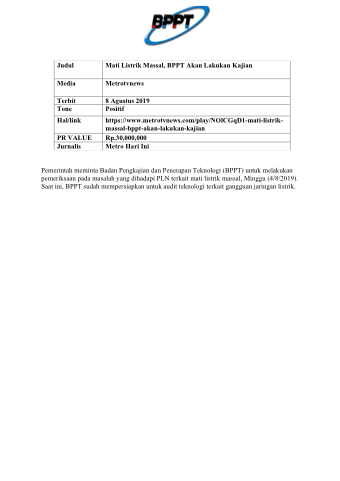 https://www.metrotvnews.com/play/NOlCGqD1-mati-listrik- massal-bppt-akan-lakukan-kajian
