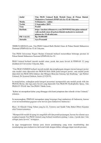 https://medan.tribunnews.com/2019/09/02/tim-pkm-unimed- raih-medali-emas-di-pekan-ilmiah-mahasiswa-nasional- pimnas-ke-32-di-udayana
