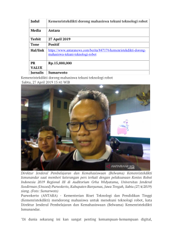 https://www.antaranews.com/berita/847176/kemenristekdikti-dorong- mahasiswa-tekuni-teknologi-robot