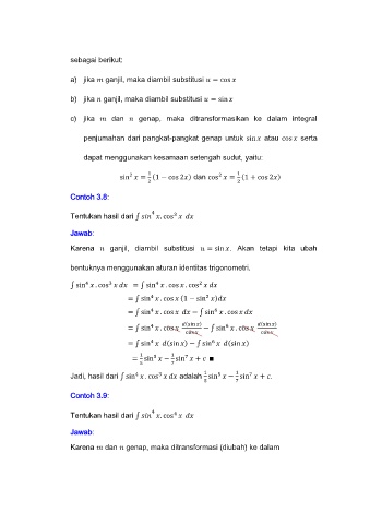 Karena ganjil, diambil substitusi = . Akan tetapi kita ubah