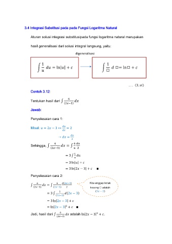 3.4 Integrasi Substitusi pada pada Fungsi Logaritma Natural