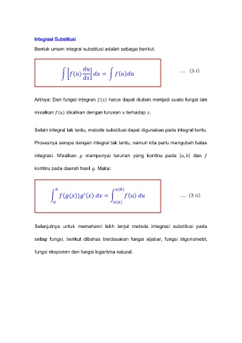 Bentuk umum integral substitusi adalah sebagai berikut.