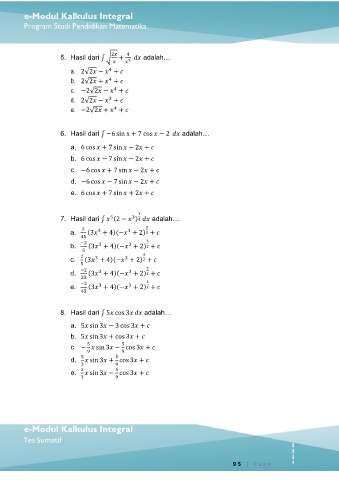 6. Hasil dari ∫ −6 sin x + 7 cos − 2 adalah…