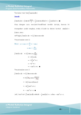 sehingga ∫ sin 2 = 2 ∫ sin cos