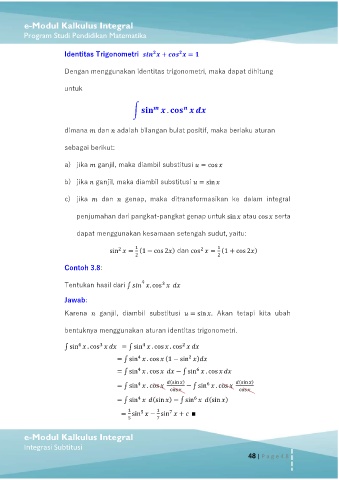 Karena ganjil, diambil substitusi = sin . Akan tetapi kita ubah