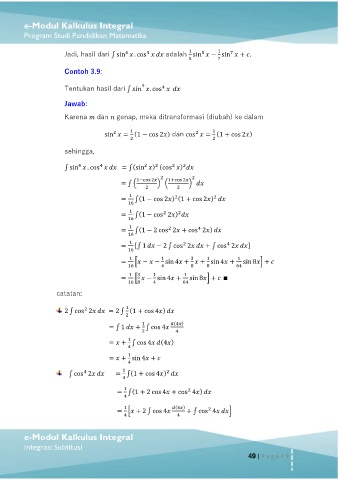 Jadi, hasil dari ∫ sin . cos adalah sin − sin + .