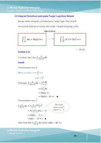 3.4 Integrasi Substitusi pada pada Fungsi Logaritma Natural