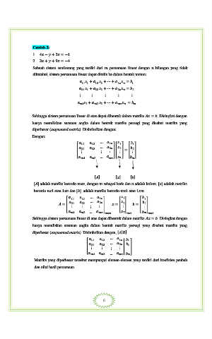 Sehingga sistem persamaan linear di atas dapat dibentuk dalam matriks = . Disingkat dengan