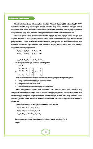 membentuk baris eselon. Eliminasi Gauss Jordan adalah untuk mereduksi matriks yang diperbanyak