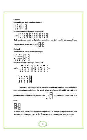 utama atau terdapat dua baris nol, ini berarti bahwa penyelesaian SPL adalah tak trival yaitu