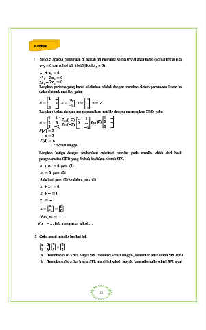 ∀ = 0 dan solusi tak trivial jika ∃ ≠ 0)
