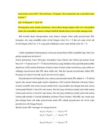 homogen, ada yang memiliki solusi trivial dengan solusi ∀ = 0 dan ada yang solusi tak