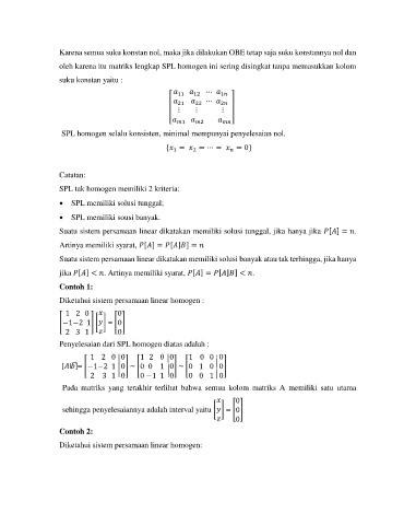oleh karena itu matriks lengkap SPL homogen ini sering disingkat tanpa memasukkan kolom
