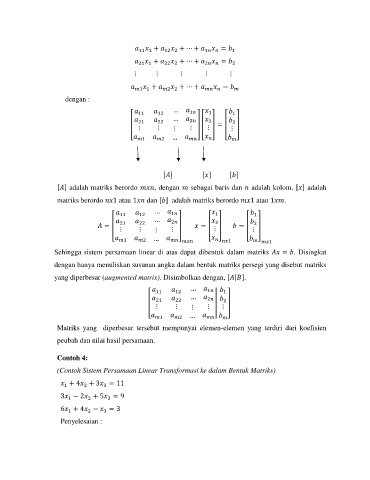 (Contoh Sistem Persamaan Linear Transformasi ke dalam Bentuk Matriks)