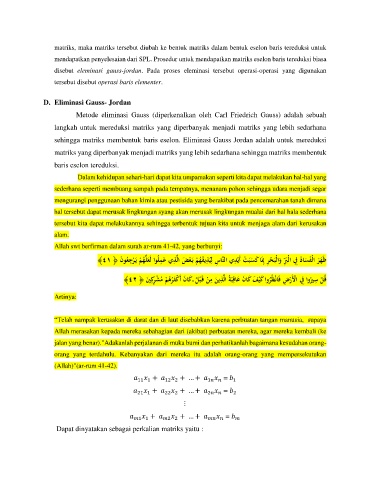 matriks, maka matriks tersebut diubah ke bentuk matriks dalam bentuk eselon baris tereduksi untuk