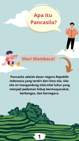 Apa itu Pancasila? Mari Membaca! Pancasila adalah dasar negara Republik Indonesia yang terdiri dari lima sila. Sila- sila ini mengandung nilai-nilai luhur yang menjadi pedoman hidup bermasyarakat, berbangsa, dan bernegara. 1