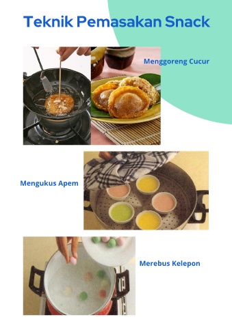 Teknik Pemasakan Snack Menggoreng Cucur Mengukus Apem Merebus Kelepon