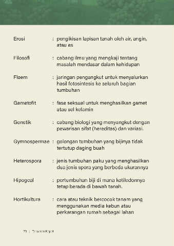 Erosi : pengikisan lapisan tanah oleh air, angin, Juvenil : fase perkembangan tanaman mulai dari biji