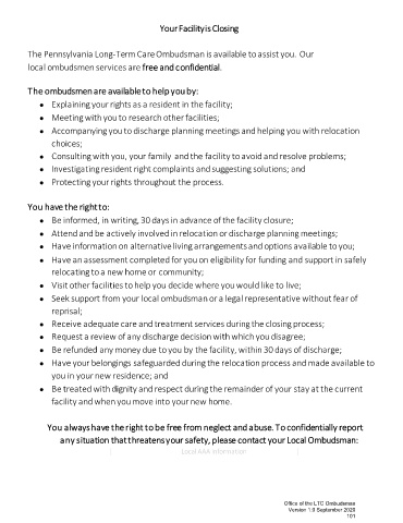 • Be informed, in writing, 30 days in advance of the facility closure;