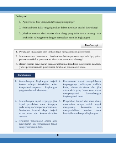 1. Keseimbangan lingkungan terjadi 4. Pencemaran dapat mengakibatan