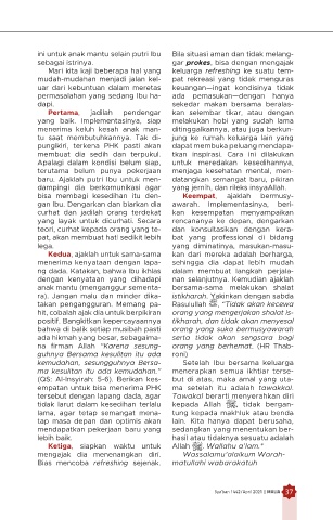 baru. Ajaklah putri Ibu untuk men datangkan semangat baru, pikiran