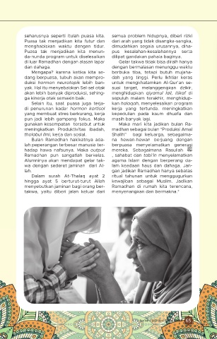 Selain itu, saat puasa juga terja- kan halaqah, menyelesaikan program