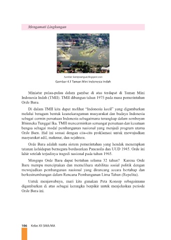 Indonesia Indah (TMII). TMII dibangun tahun 1975 pada masa pemerintahan