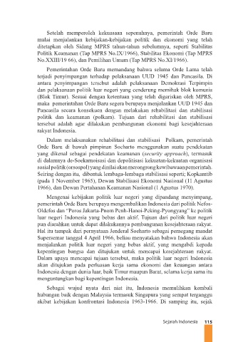 pemerintah Orde Baru berupaya mengembalikan Indonesia dari politik Nefos-