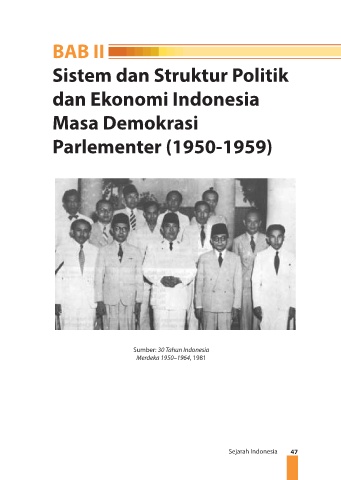 BAB II Sistem dan Struktur Politik dan Ekonomi Indonesia Masa Demokrasi Parlementer (1950-1959) Sumber: 30 Tahun Indonesia Merdeka 1950–1964, 1981 Sejarah Indonesia 47