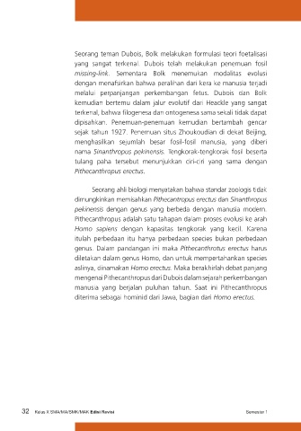 mengenai Pithecanthropus dari Dubois dalam sejarah perkembangan