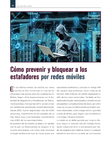 casi el 80% de los casos reportados. La estafa es un delito penado por la ley en Bo-