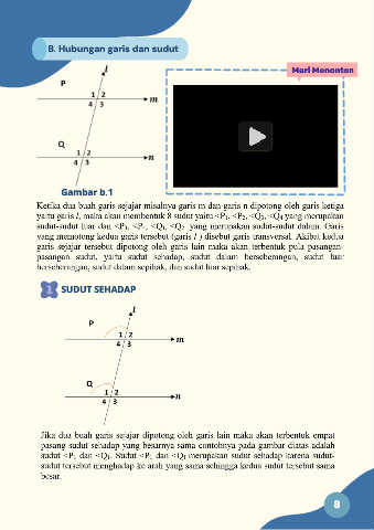 B. Hubungan garis dan sudut Mari Menonton Gambar b.1 SUDUT SEHADAP 8