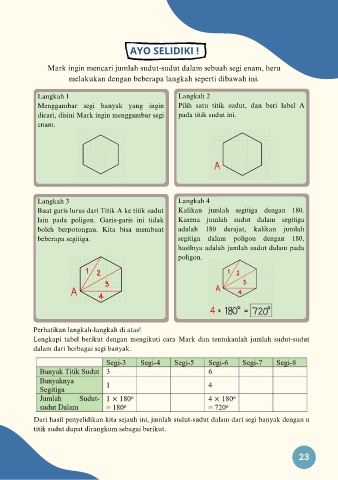 Mark ingin mencari jumlah sudut-sudut dalam sebuah segi enam, heru