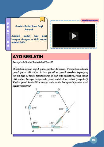 sisi-sisi segi-6, pensil berubah arah di tiap titik sudutnya. Pada setiap