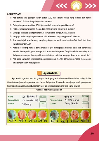 2) Pada golongan darah sistem ABO, tipe manakah yang terbanyak di kelasmu?