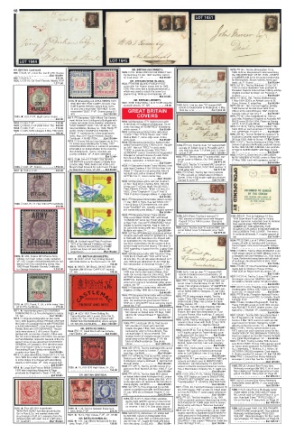 De La Rue & Co. Incl scarlet shade with 1027. Û 10-12, High Values. F-VF, LH . 57.00 1052. Ö 2 (Pl 2), Attractive F-VF stamp tied duplex cancels on illustrated BOER WAR Pa- Mulready imitated design “PEG-LEG