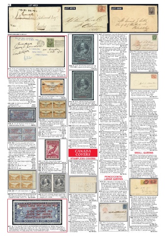 4924. Û C13a, Right margin Imperforate Pair. 4937. Ú NFR35, Scarce $100 Caribou, 4951. Ö Stampless 1794 folded letter 4972. Ö Stampless Official cover with red 4988. Ö 35 (3), Each stamp tied by “WAY