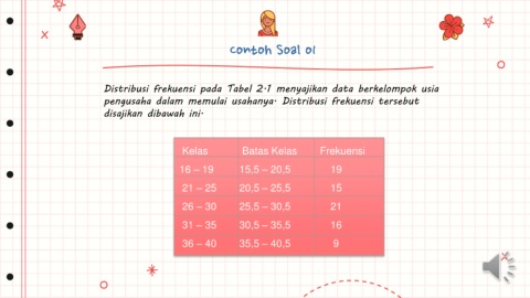 Distribusi frekuensi pada Tabel 2.1 menyajikan data berkelompok usia
